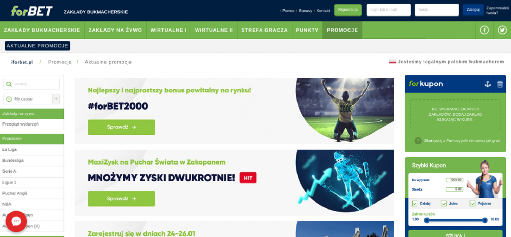 Poza tym forBET to bukmacher, który stawia na prostotę i funkcjonalność. Jeśli Twoim celem są zakłady bukmacherskie, a nie obserwowanie fajerwerków graficznych, to trafiłeś idealnie.