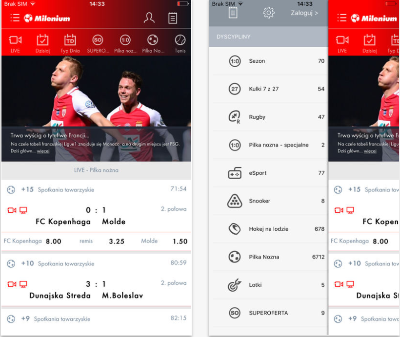 Aplikacja mobilna zakładów bukmacherskich Milenium